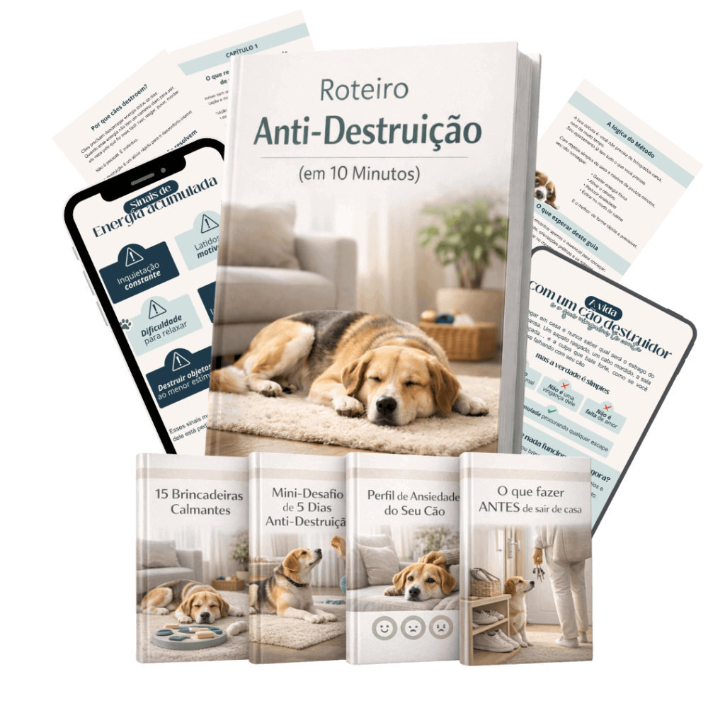 Seu cão não destrói porque é mal. Ele destrói porque a energia fica presa no corpo. Quando não sai, vira ansiedade, agitação e destruição. E o ciclo se repete.